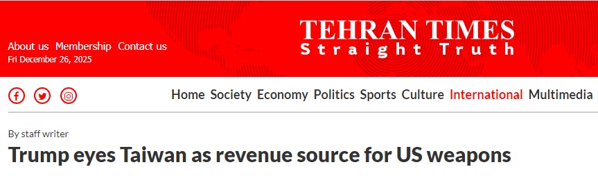 《德黑兰时报》网站另一篇文章称,美国对台军售据说是为了维护台海和平稳定,但这种说辞根本站不住脚。向敏感区域投掷武器并不能灭火,只能“火上浇油”。民进党当局越来越沉迷于“以武力寻求自由”的危险幻想。台湾已成为美国地缘政治操纵的棋子美国战略博弈的稳定性受到威胁。